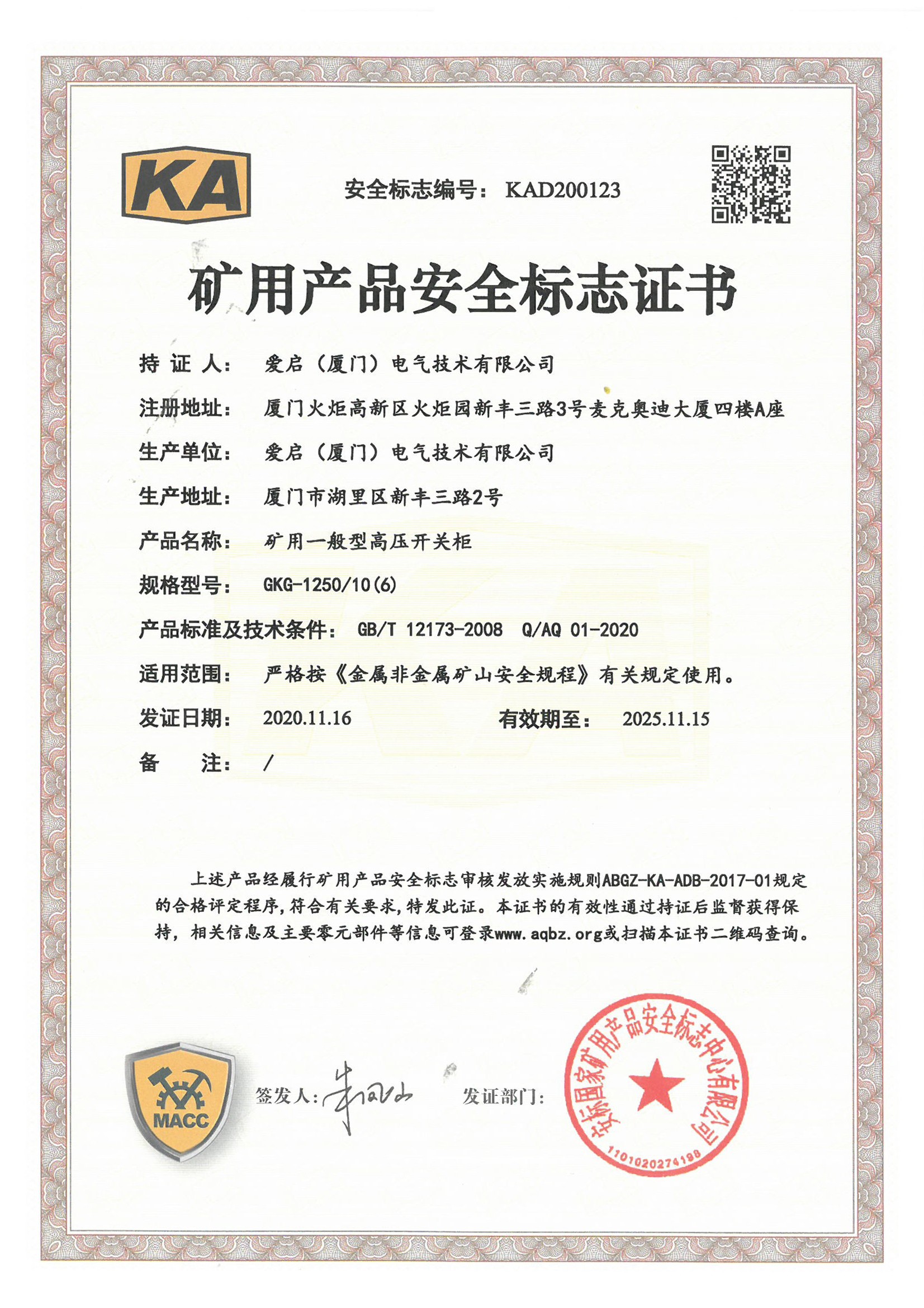 矿用产品安全标志证