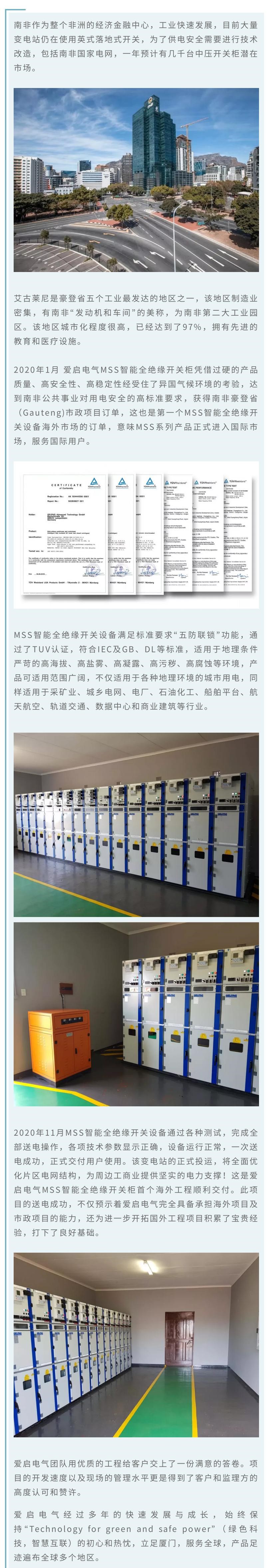 送电成功!爱启电气MSS智能全绝缘开关柜第一个海外项目顺利落成,助力南非市政供电安全